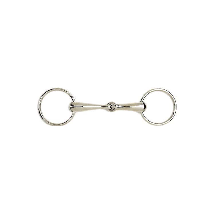 This loose ring bit is a single jointed hollow mouthed snaffle.