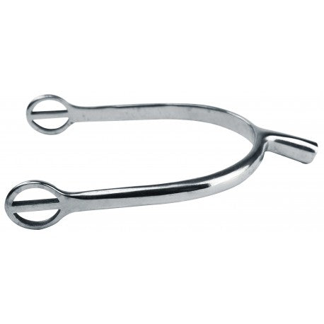 These ladies' spurs feature rounded loops designed for easy strap threading and a cylindrical tip for precise control. Crafted from durable stainless steel, they combine functionality with lasting quality.