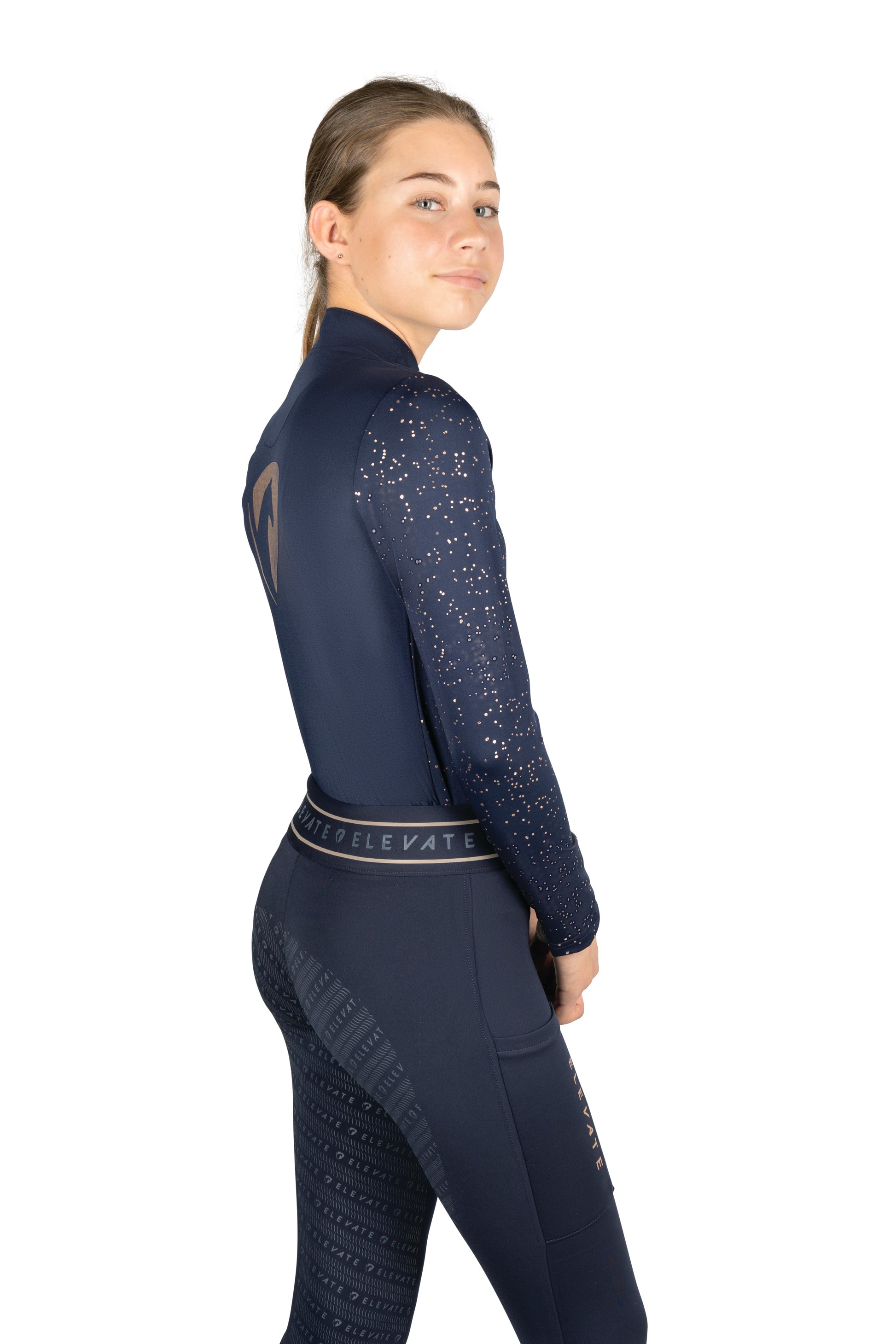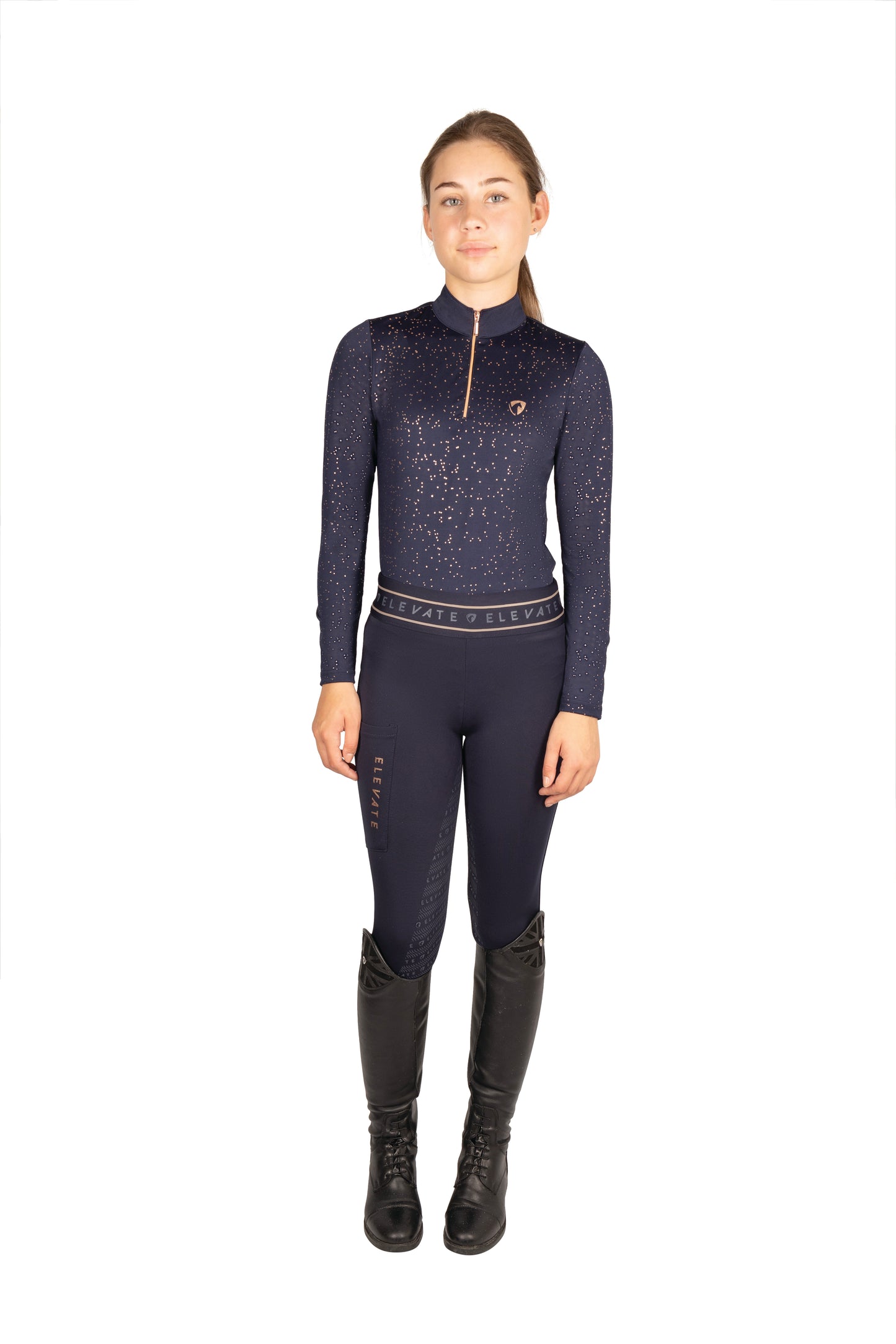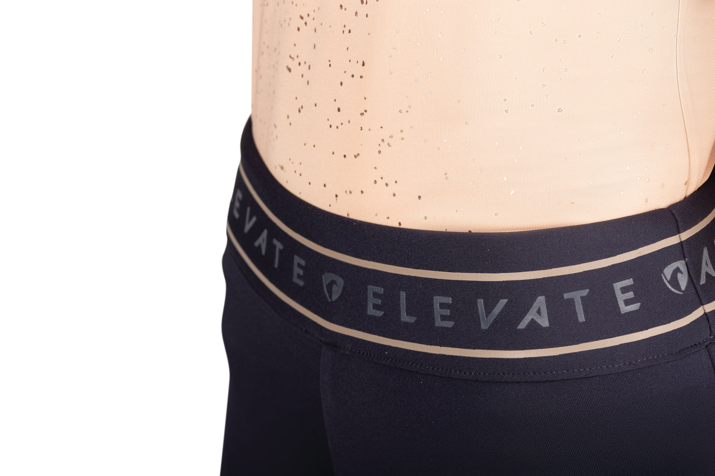 The perfect combination of style and function, our Hy Elevate Allure Mize Riding Tights in Navy offer optimal movement and flexibility with a four-way stretch cotton blend material. Complete with a metallic logo and practical phone pocket, these tights also feature a flattering wide waistband and tonal silicone seat for extra grip while riding. Pair with other items from the Elevate Allure range for a coordinated and elevated look.