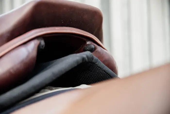 Kentucky Horsewear used a memory foam that is known for its use in the army and as protective gear. We developed a half pad that protects your horse the same way. The 3D spacer is a 3D honeycomb structure with a cushioning effect, which has shock-absorbing performances. The material is highly breathable and ensures that the horse’s back won’t heat up. This will diminish any irritations at the back of the horse.