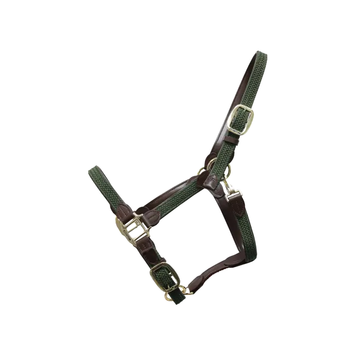 The Plaited Nylon Halter is made of artificial leather (100% animal friendly) and has a nylon braided design. This artificial leather does not absorb water or dirt, does not break or change color. It’s more flexible than real leather and therefore much nicer to use. The size can be adjusted on the left side of the head and on the chin thanks to the holes in the artificial leather. The pin can penetrate the braided design anywhere and therefore enables a perfect fit. All closures are gold colored and are a perfect match with our leads. The Plaited Nylon Halter can be cleaned with our Kentucky Horsewear Tack Cleaner and is machine washable at 30°, no dryer. The Tack Cleaner was specially developed to clean our artificial leather. Very easy and efficient! Do not clean with glycerin soap.
