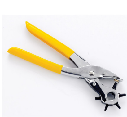 The Lincoln Leather Punch features a revolving design with multiple hole sizes, providing versatility for all your leather working projects. Its plastic-coated handle ensures comfortable grip and precise control while punching.