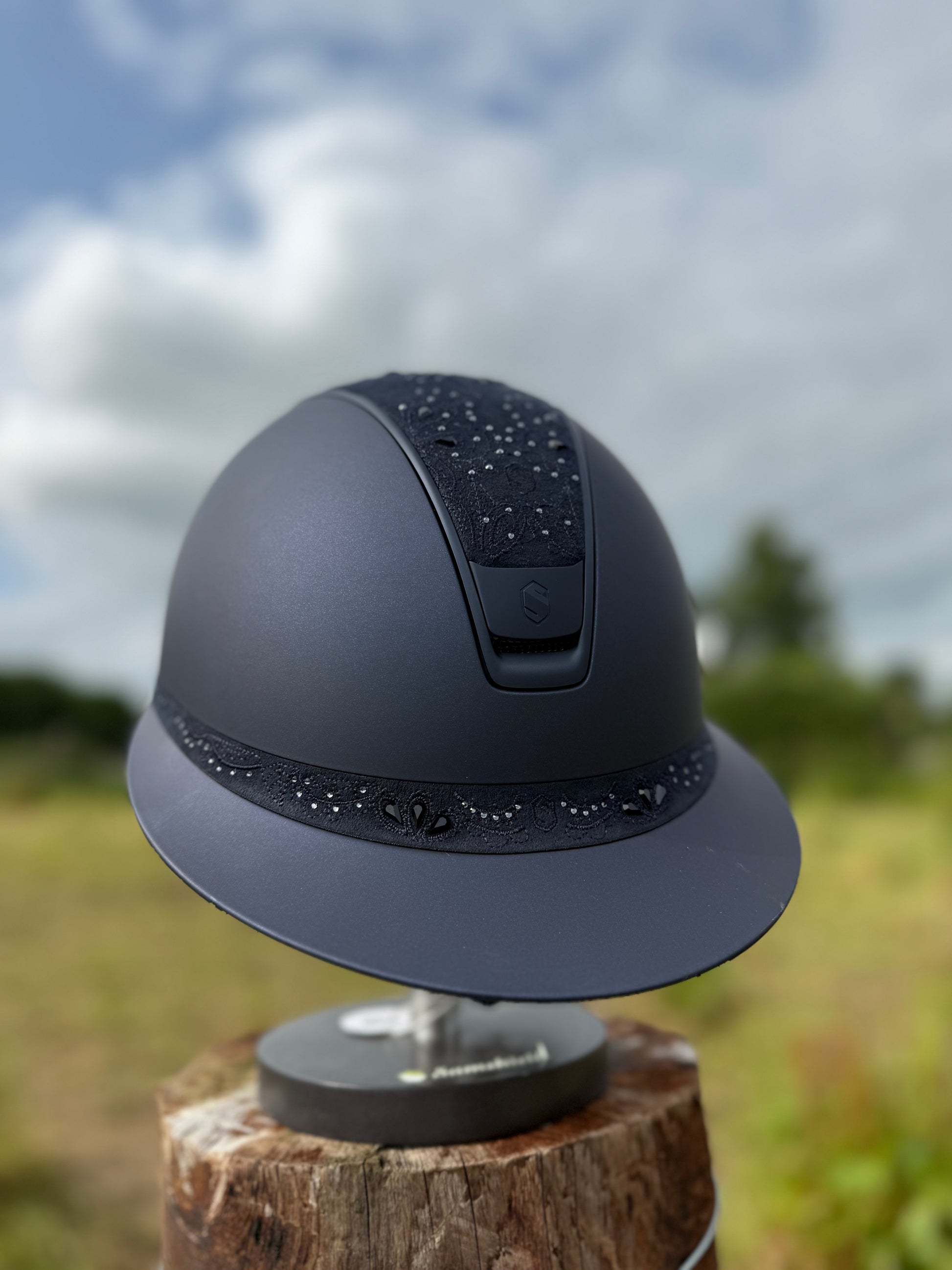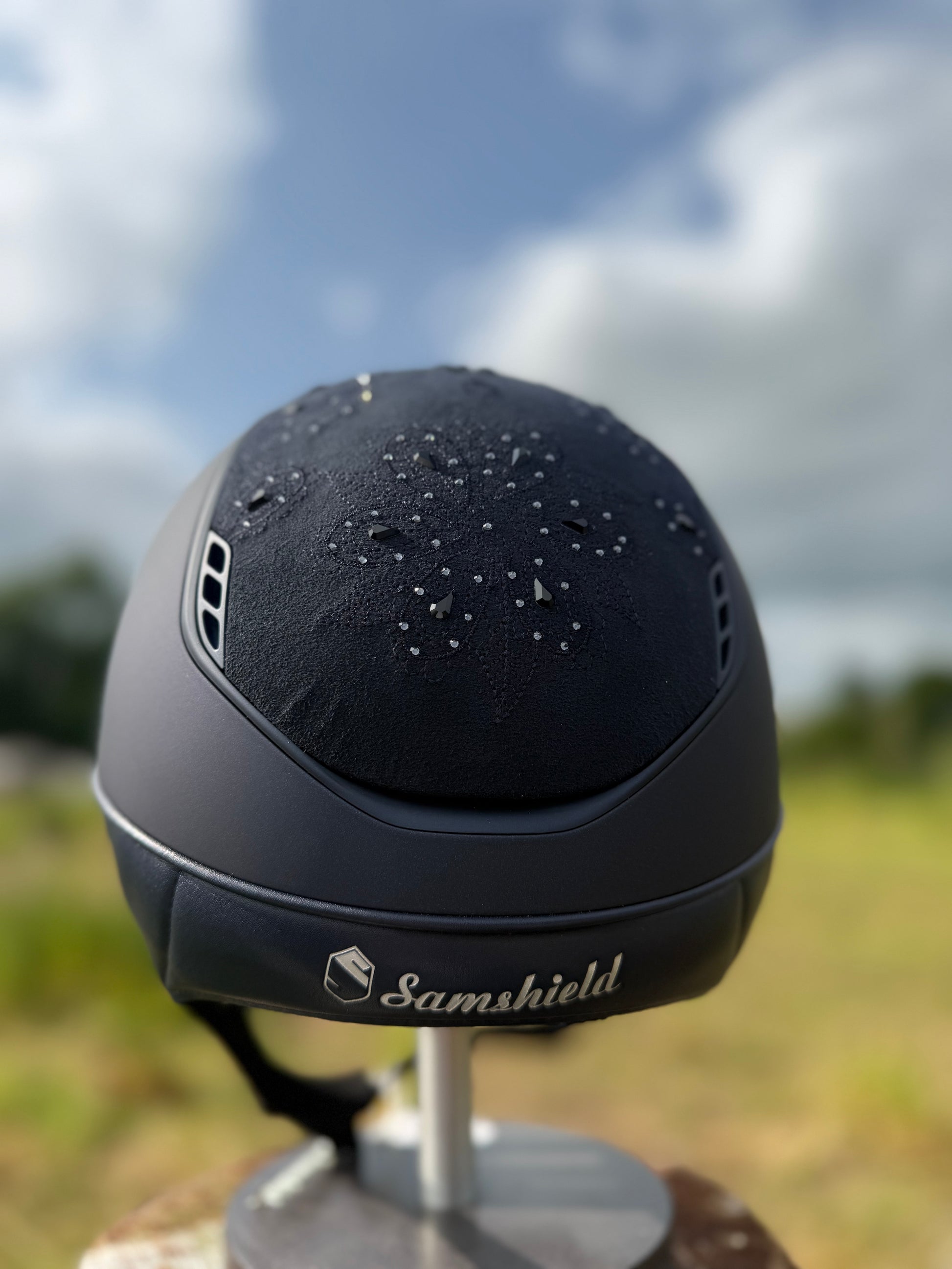 Samshield Miss Shield Helmet Navy With Crystal Bloom Top & Frontal Band and Matt Navy Trim & Blazon